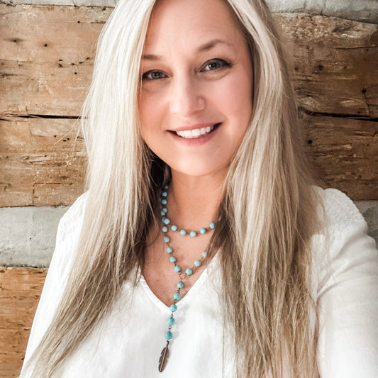 Double Strand Lariat Jasper Necklace w/ Copper Feather | Bourbon Cowgirl