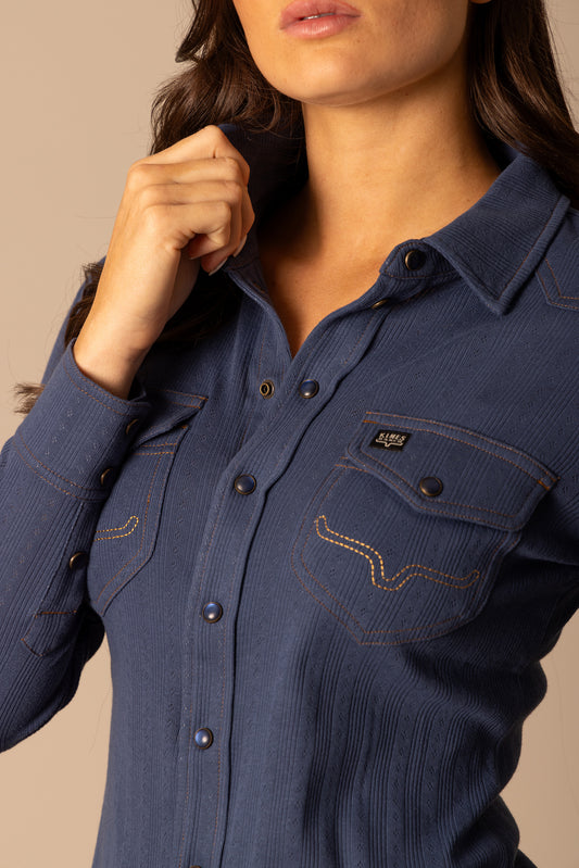 Isabel Pointelle Shirt by Kimes Ranch in Dark Blue