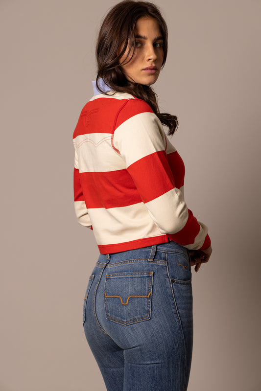 Jamila Crop Polo Shirt by Kimes Ranch in Red Stripes