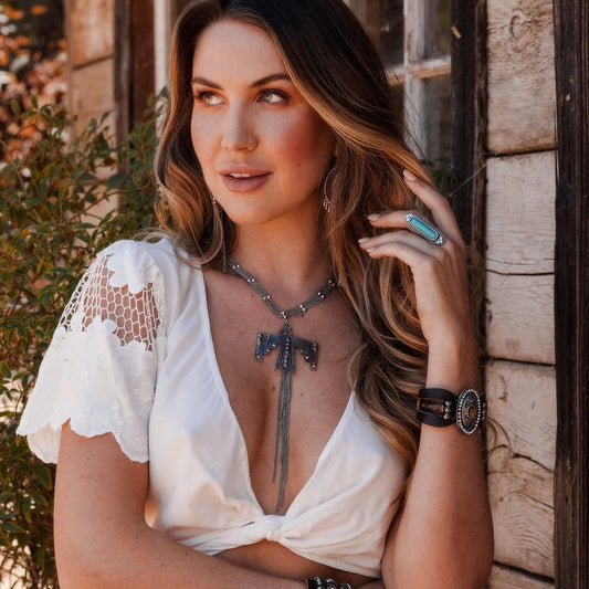 Large Turquoise and Feathers Handmade Necklace for Bourbon Cowgirl