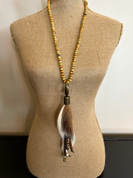 Strand of Bone Beads with Axis Deer Hide Necklace - Amy Kaplan for Bourbon Cowgirl