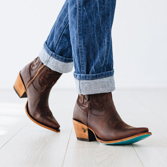 Not every cowgirl moment calls for a tall boot. Sometimes you want the western style, the handmade quality, and the turquoise sole without a shaft that reaches mid-calf or higher. Our ankle cowgirl boots collection brings together booties and short western boots that deliver full cowgirl energy in a compact silhouette that works for everyday wear, warmer weather, and outfits where a shorter boot just fits better.