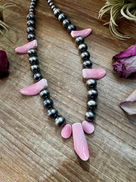 NFR Collection Necklace – 8mm & 14mm Sterling Silver Pearls with Pink Conch Shell – 23"