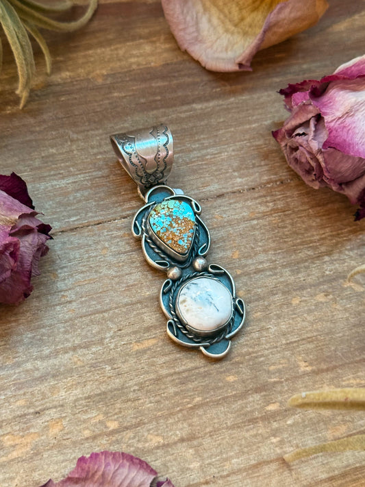 Golden Hills Turquoise & White Buffalo Sterling Silver Pendant
