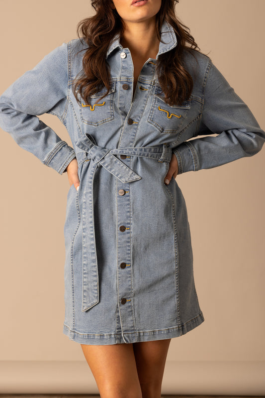Winslow Trucker Dress by Kimes Ranch in Denim