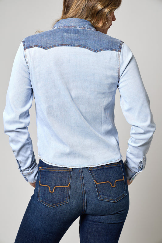 Rayna Snap Front Top by Kimes Ranch in Denim