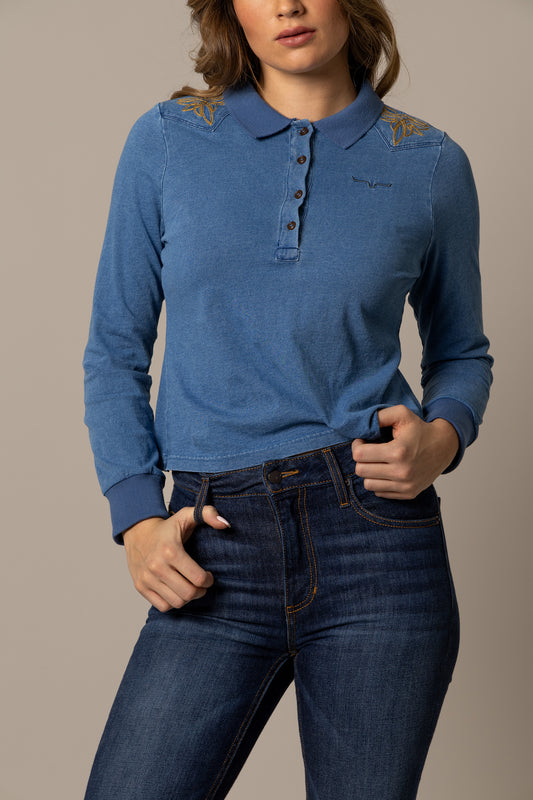 Bluebell Long Sleeve Polo Shirt by Kimes Ranch in Indigo