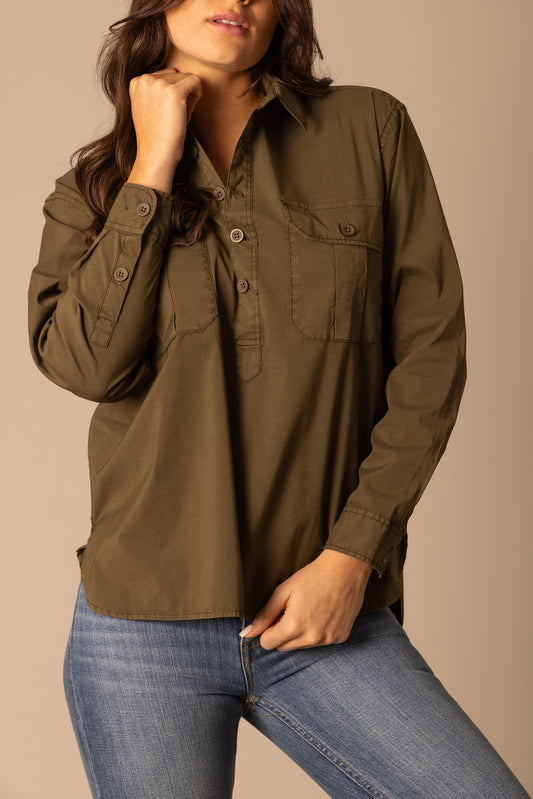 Abigail Popover Shirt by Kimes Ranch in Dark Olive