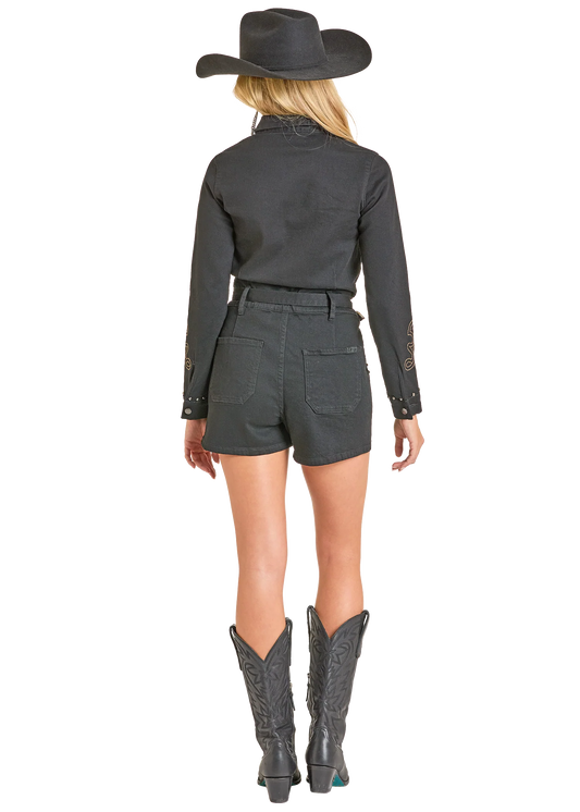 Black Long Sleeve Romper by Panhandle at Bourbon Cowgirl