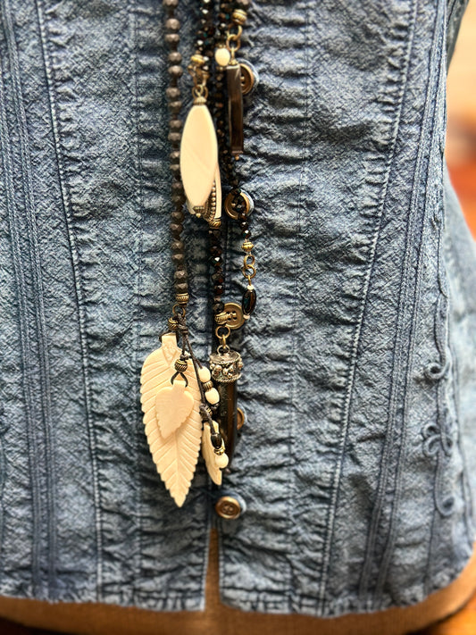 Jet and Bone Lariat Necklace - Amy Kaplan for Bourbon Cowgirl