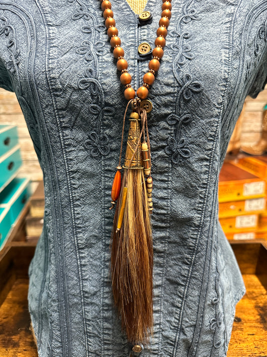 Copper Bead with Horsehair Tassel Necklace - Amy Kaplan