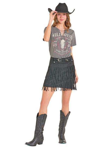 Fringe Microsuede Skirt by Panhandle for Country Girls at Bourbon Cowgirl