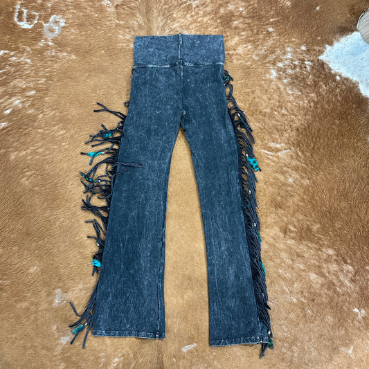 Chap Full Fringe and Feathers Pants by Pat Dahnke -Black