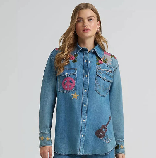 Wrangler X Lainey Wilson Embroidered Denim Shirt at Bourbon Cowgirl