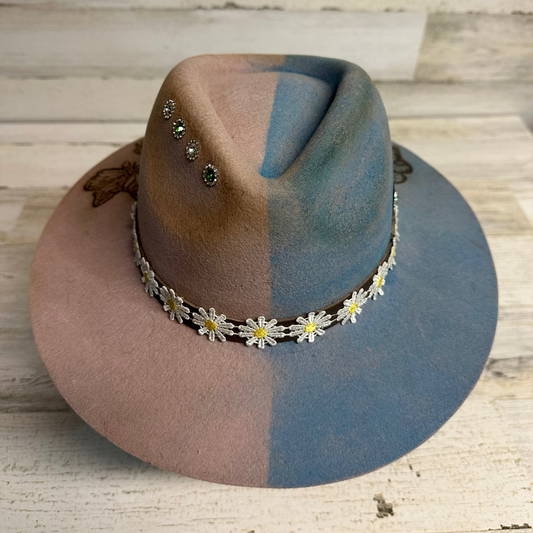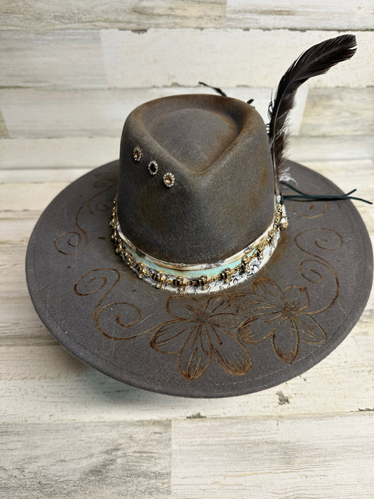 Beautifully Broken Gray Custom Cowgirl Hat by Calamity Anne