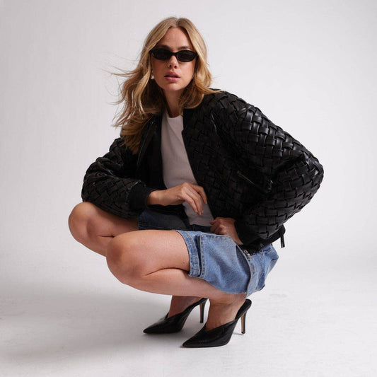 Woven Faux-Ever Leather™ Bomber Jacket - Black