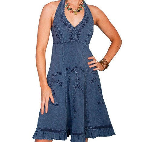 Blue Halter Dress Peruvian Cotton for Country Girls at Bourbon Cowgirl