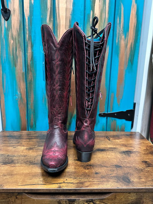 Lexington Knee High Corset Smoldering Ruby Cowboy Boots| Bourbon Cowgirl