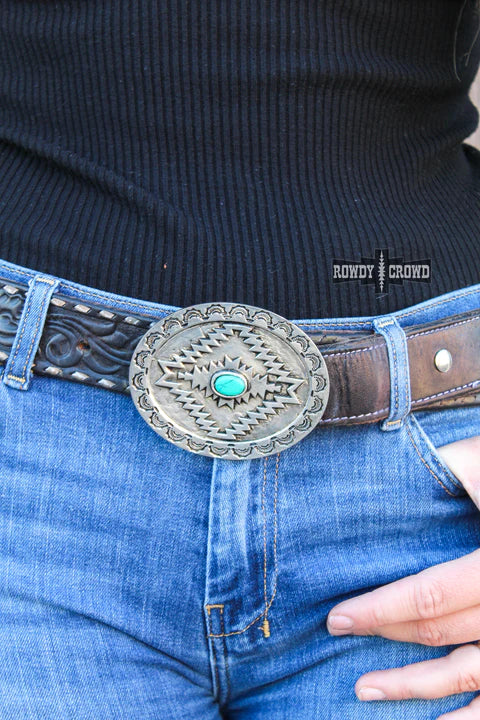 Cowgirls who love western style apparel and accessories will think our leather belt and buckles collection is the best. Leather tooled, cowhide belts can be paired with any of our silver and turquoise buckles including our custom designed Montana Silversmith rodeo buckles exclusive to Bourbon Cowgirl.