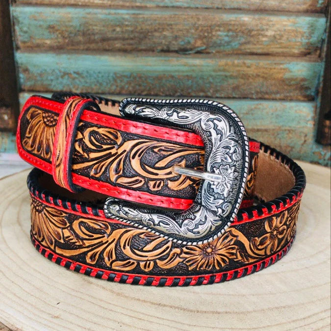 Black and Brown Tooled Leather Belt- Western Belts for Cowgirls