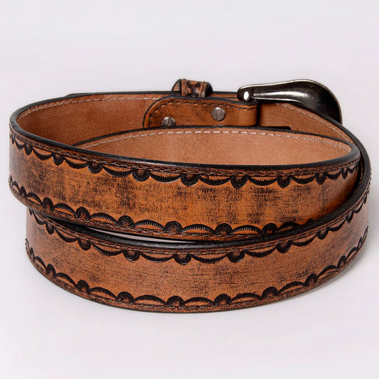 Antiqued Brown & Black Tooled Leather Belt- Western Belts for Cowgirls