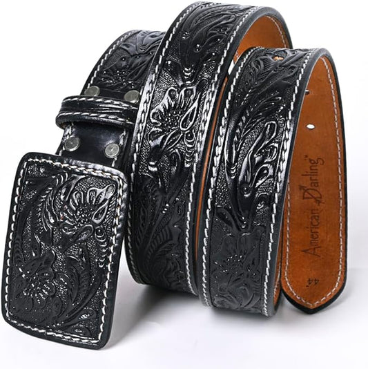 Black Tooled Leather Belt- Western Belts for Cowgirls