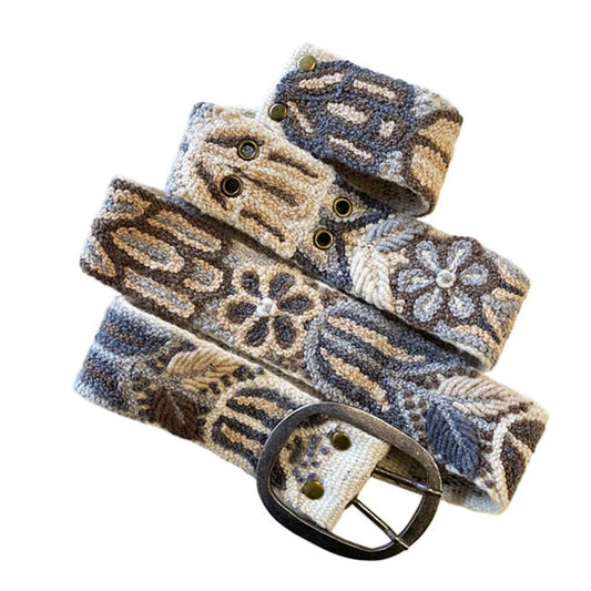 Monochromatic Embroidered Wool Belt, Cream & Gray