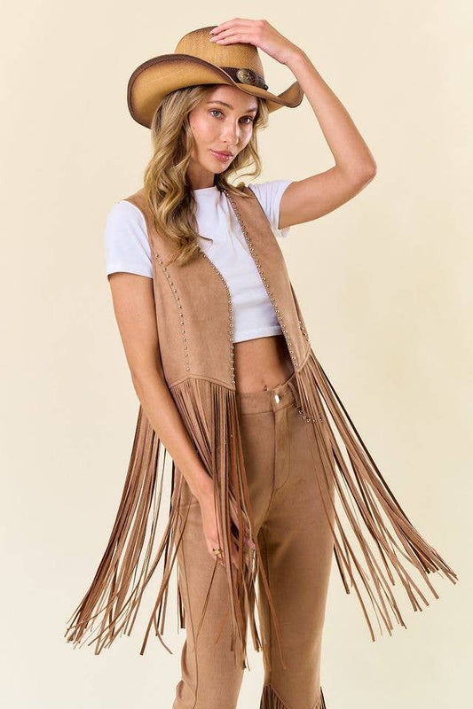 Tan Faux Suede Western Fringe Vest for Cowgirls