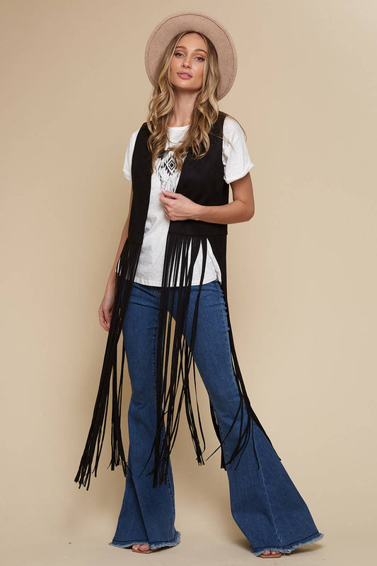 Black Western Faux Suede Fringe Vest for Cowgirls