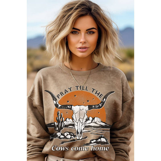 Pray Till The Cows Come Home Graphic Sweatshirt - Bourbon Cowgirl
