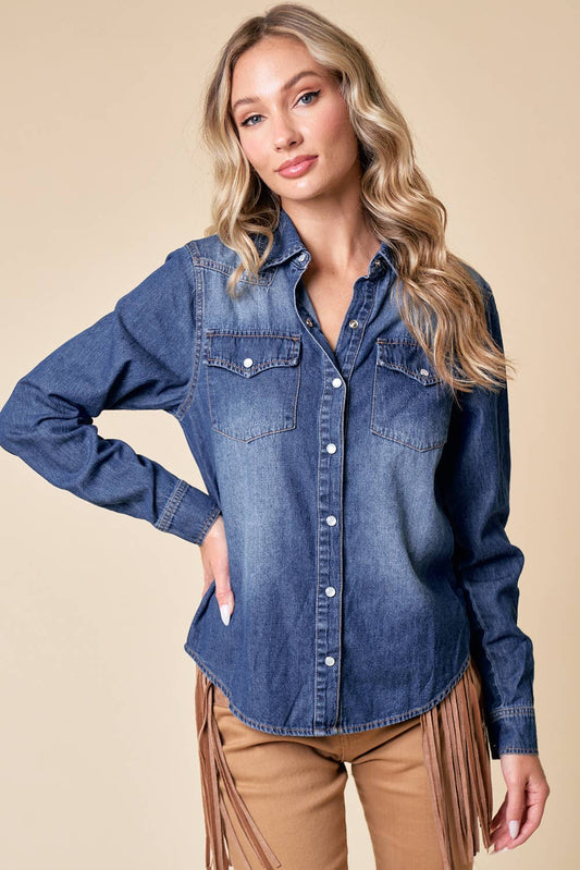 Western Dark Wash Snap Front Denim Shirt