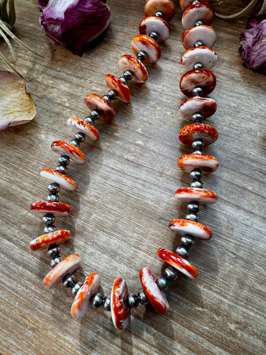 NFR Collection Necklace – 8mm Sterling Silver Pearls with 16mm Spiny Oyster Rondelle – Handmade by The Bijoux FAB – 20"