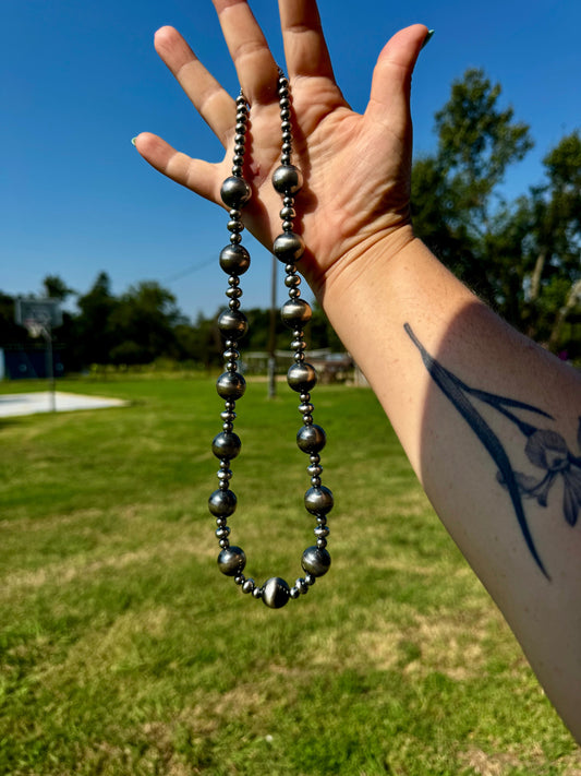 Sterling Silver Pearl Necklace – Mixed Sizes – 23"