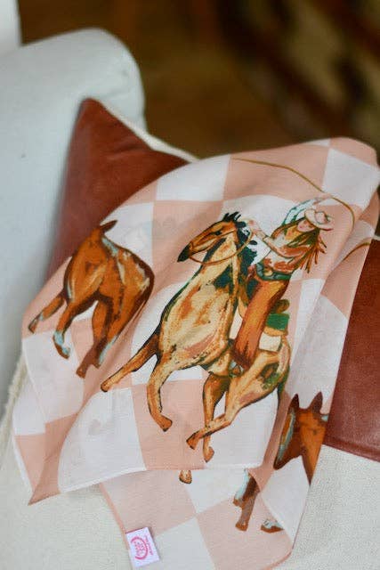 Cattle Roping Checkered Cowgirl Wild Rag, Western Scarf Band