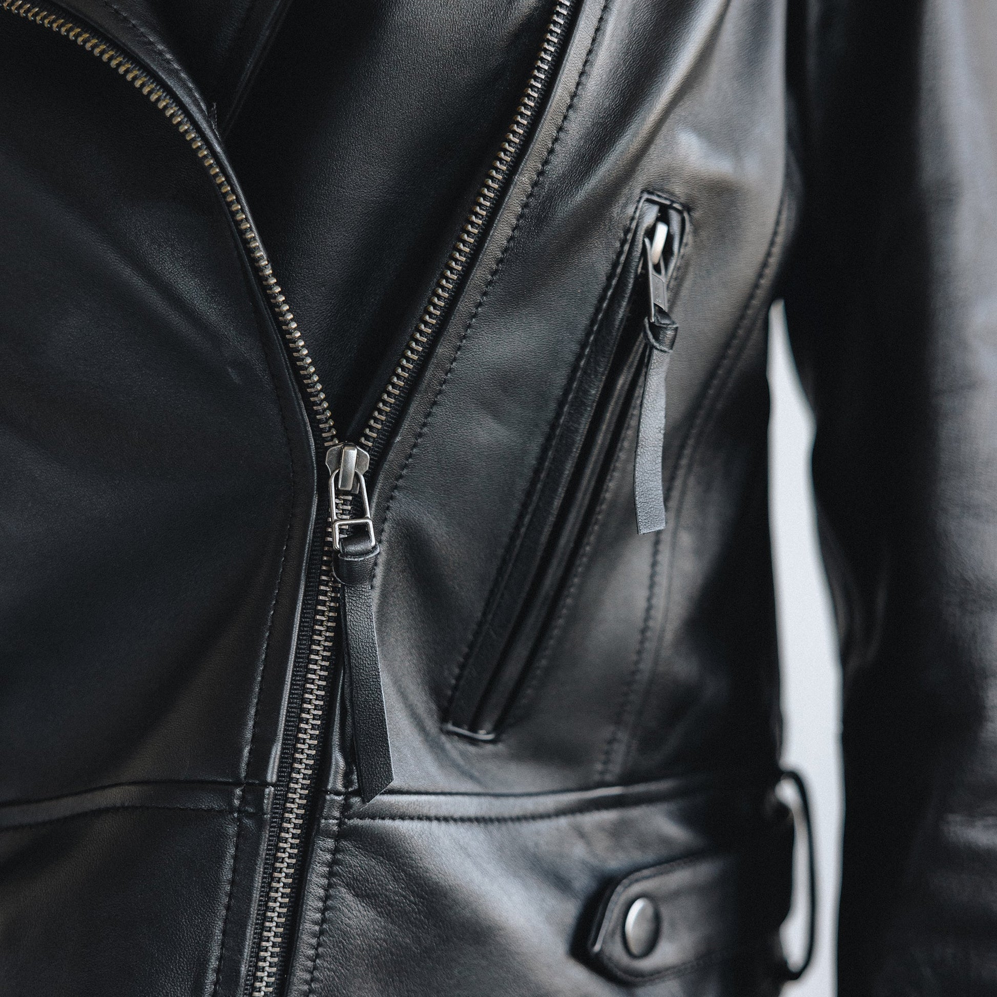 This Black Leather Biker Jacket is also available in our beautiful Desert Clay Brown Leather.