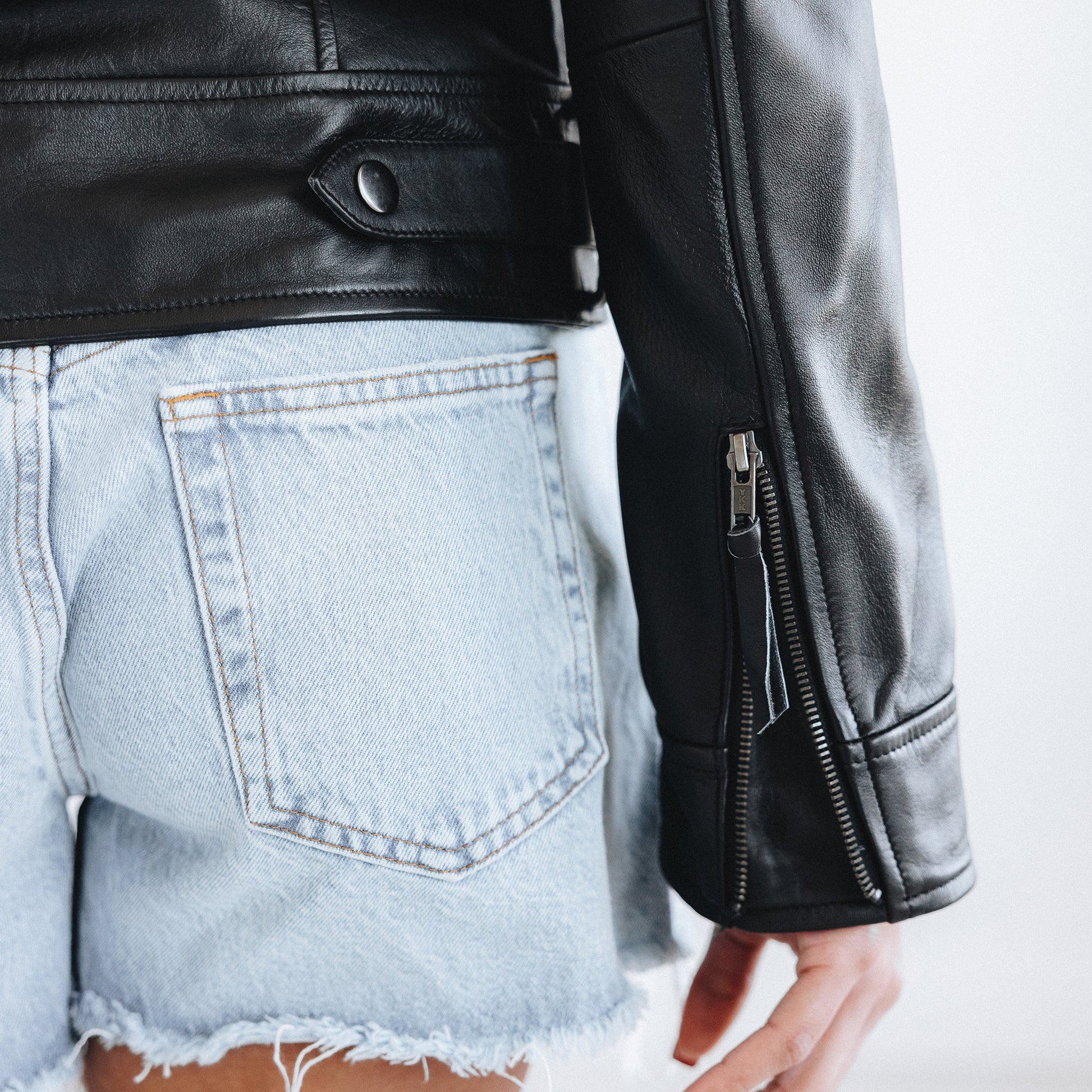 Zippered side pockets and adjustable snap tabs keep things practical, while the tailored fit flatters every curve. Toss it over a tee for a laid-back look, or pair it with denim and Smokeshows when you want to turn heads. However you wear it, this jacket rides the line between cowgirl cool and classic rock-’n-roll.