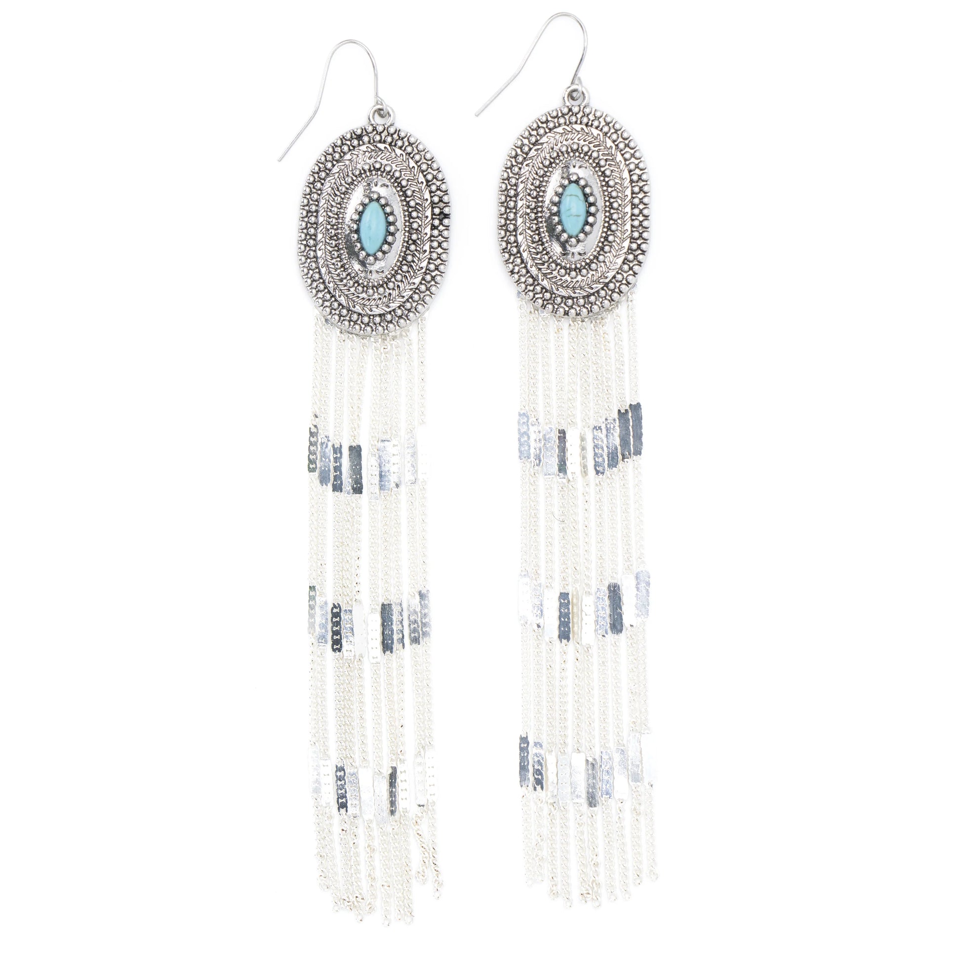 - Inlaid turquoise center stone with cascading liquid silver chain