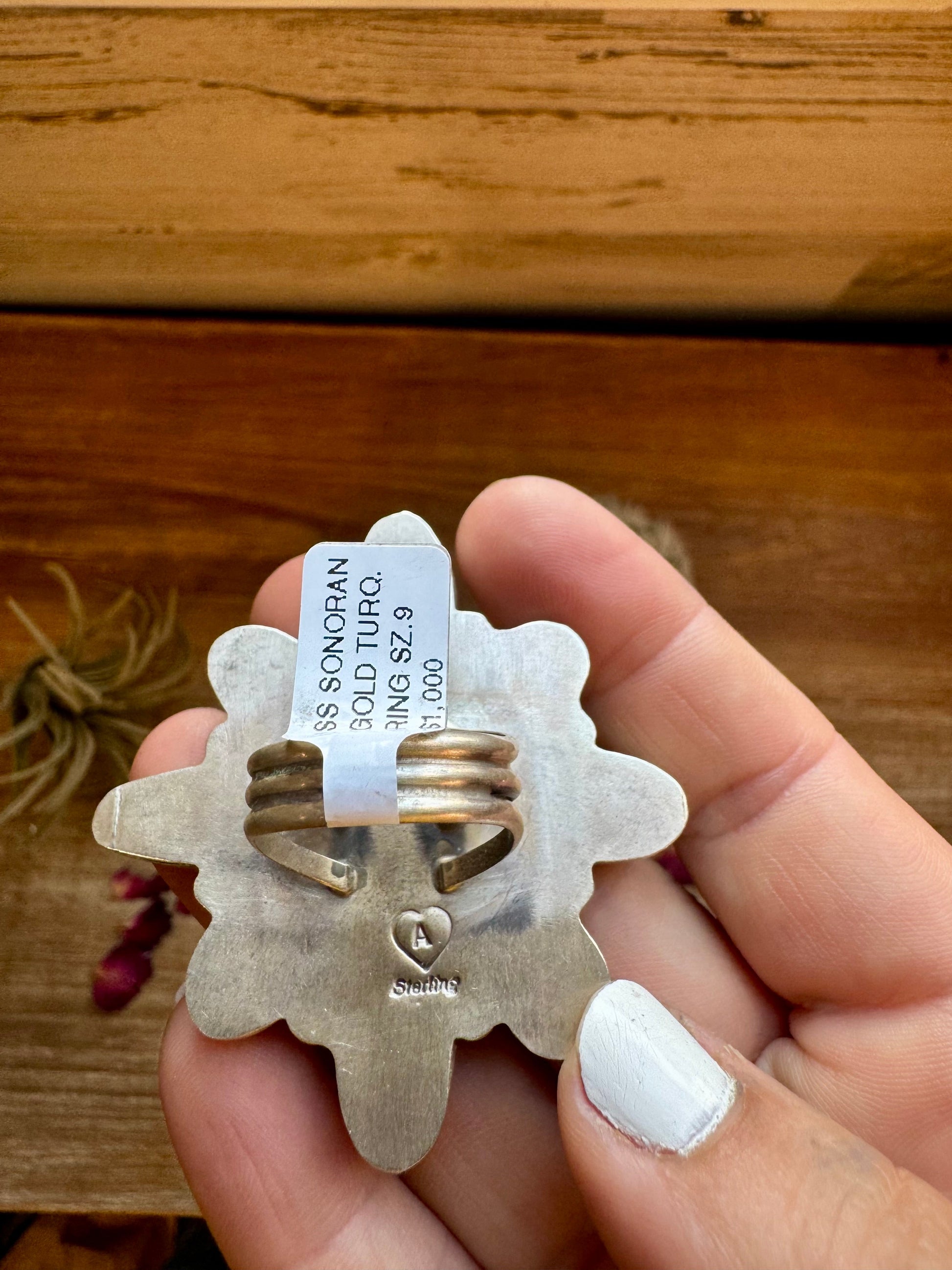 Big Flower ring- size 9 - Sonoran Gold turquoise ring and sterling silver