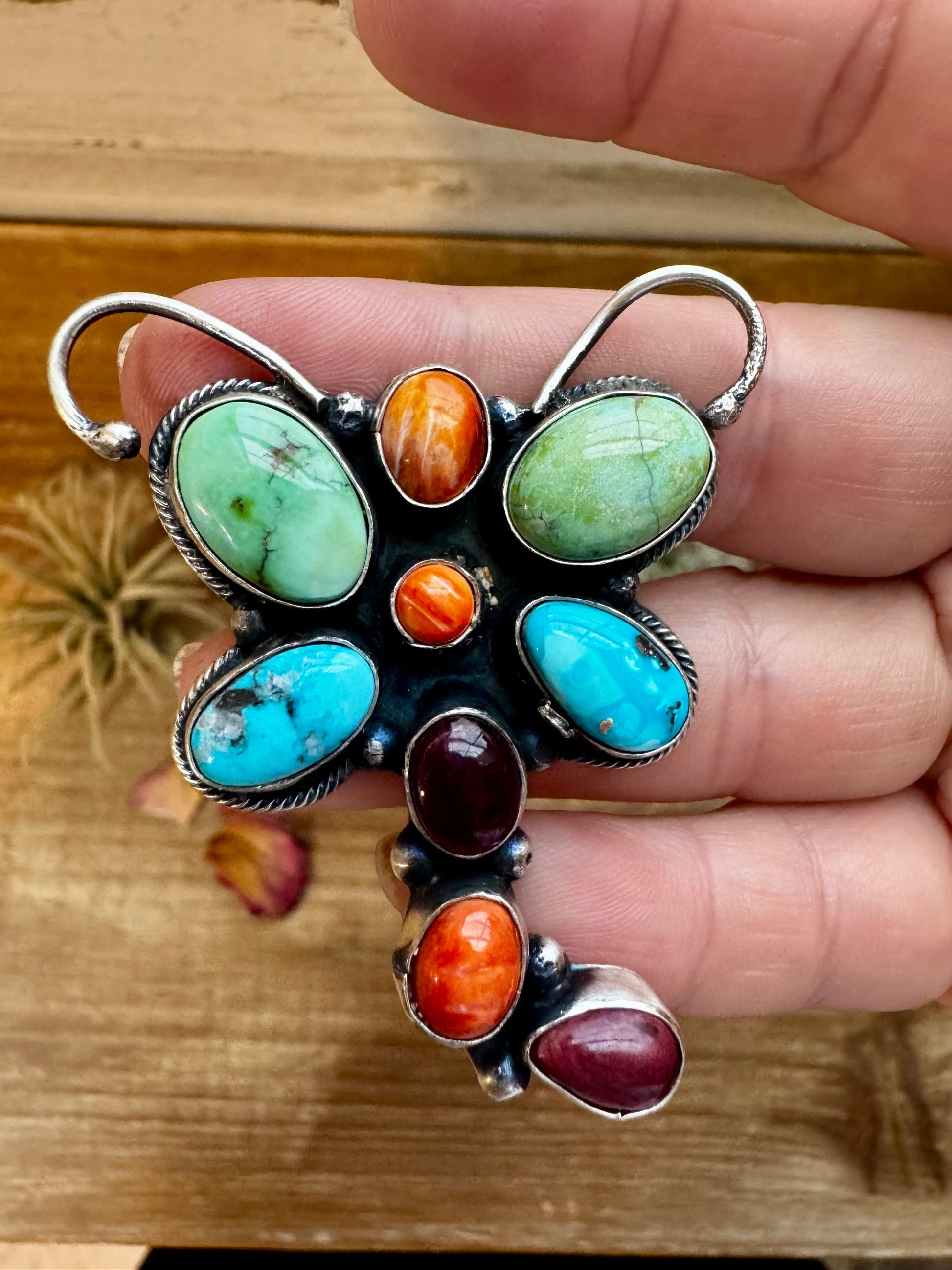 Dragon Fly Ring - Adjustable - Mix Stone & Sterling Silver