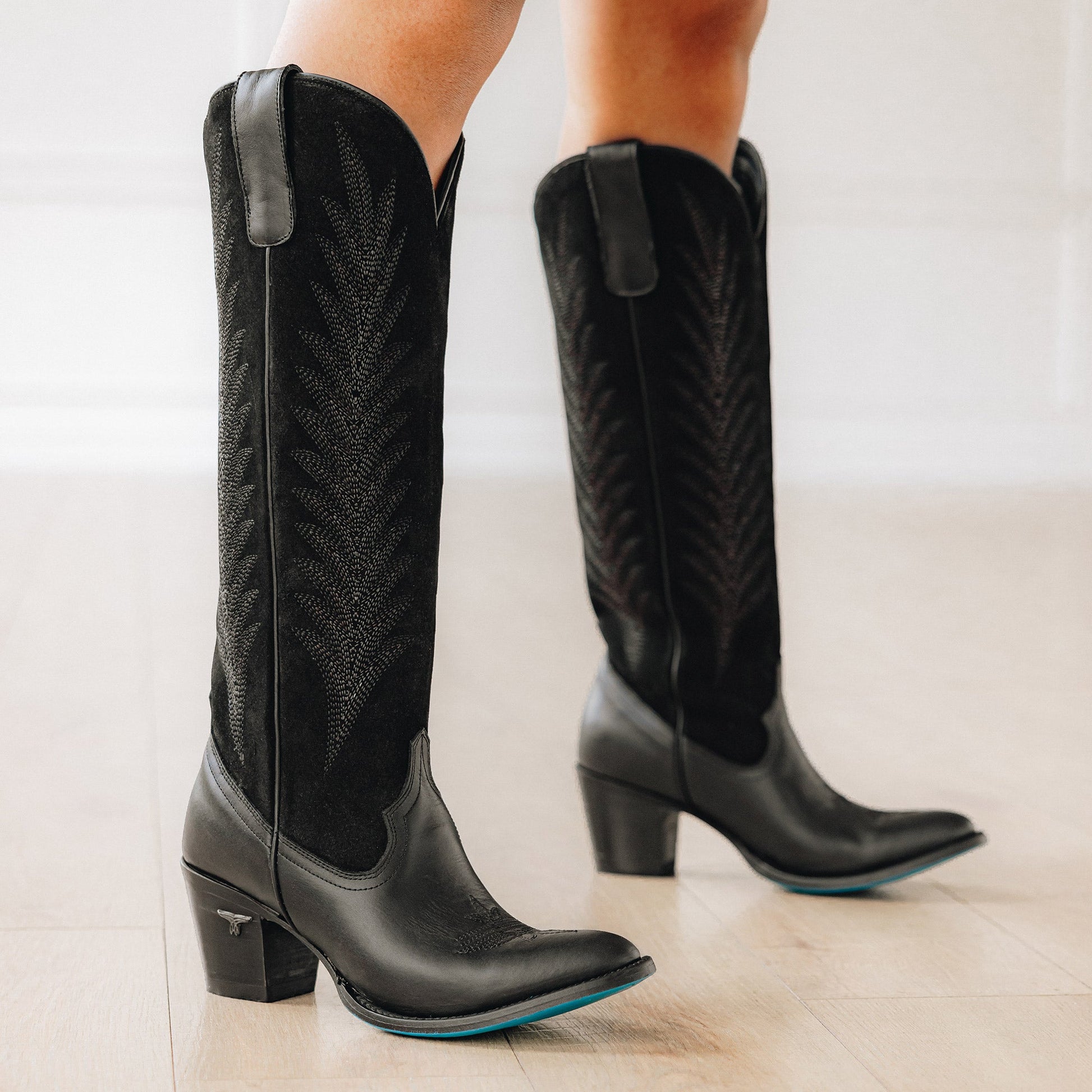 Jentry Knee High Boot - Jet Black & Soft Black Suede