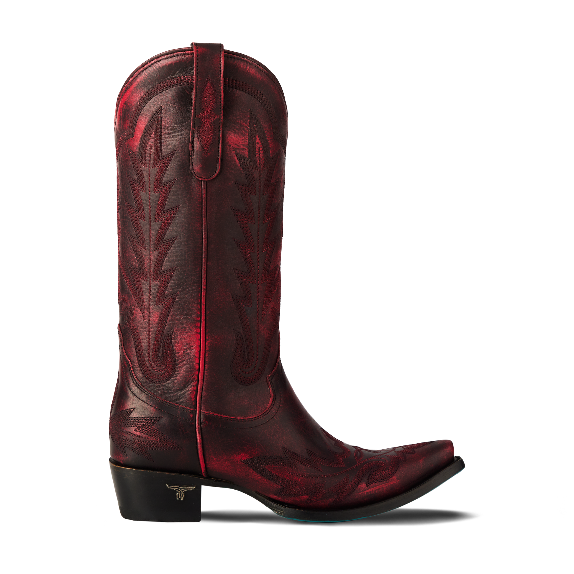 Heirloom quality boots with a core western influence. The classic snip toe profile is embroidered to perfection with a twist on traditional flame stitch.