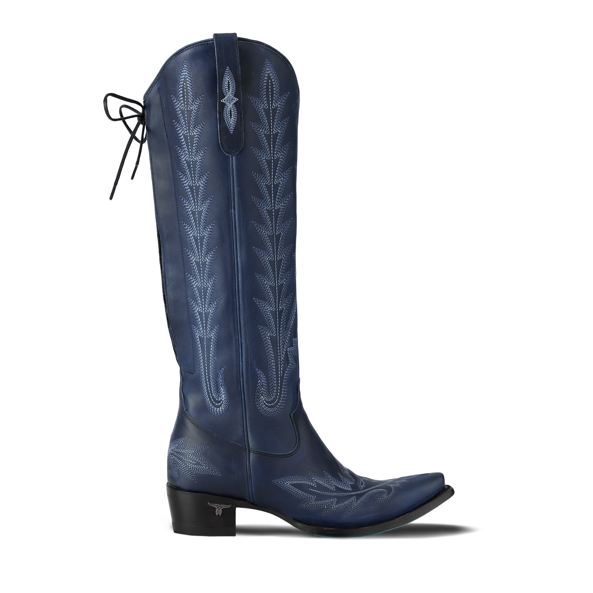Deep, refined, and unexpectedly versatile, the Lexington Knee High Corset in Midnight Navy leather offers a sophisticated alternative to black. This women’s knee-high cowboy boot delivers bold color with timeless appeal.