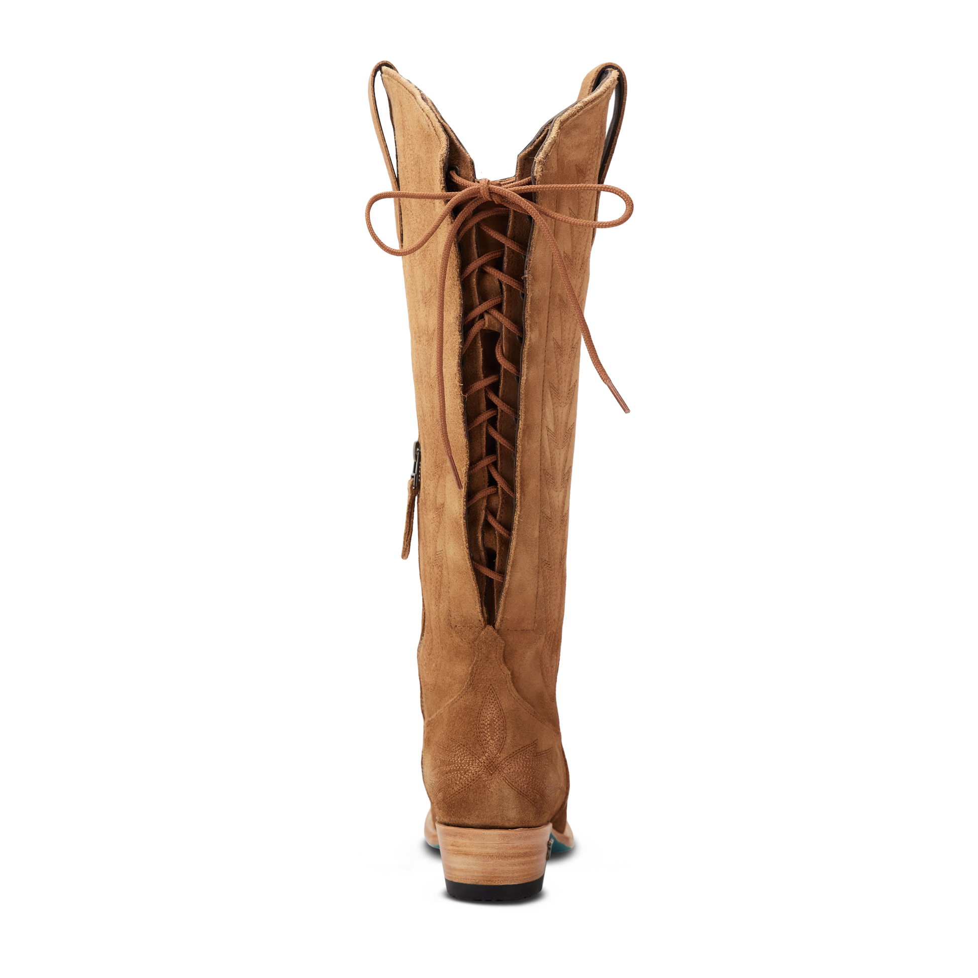 Heirloom quality with a core western influence. The classic snip toe profile is embroidered to perfection with a twist on traditional flame stitch and a functional corset back. The Lexington Knee-High is timeless and sexy all wrapped in one.