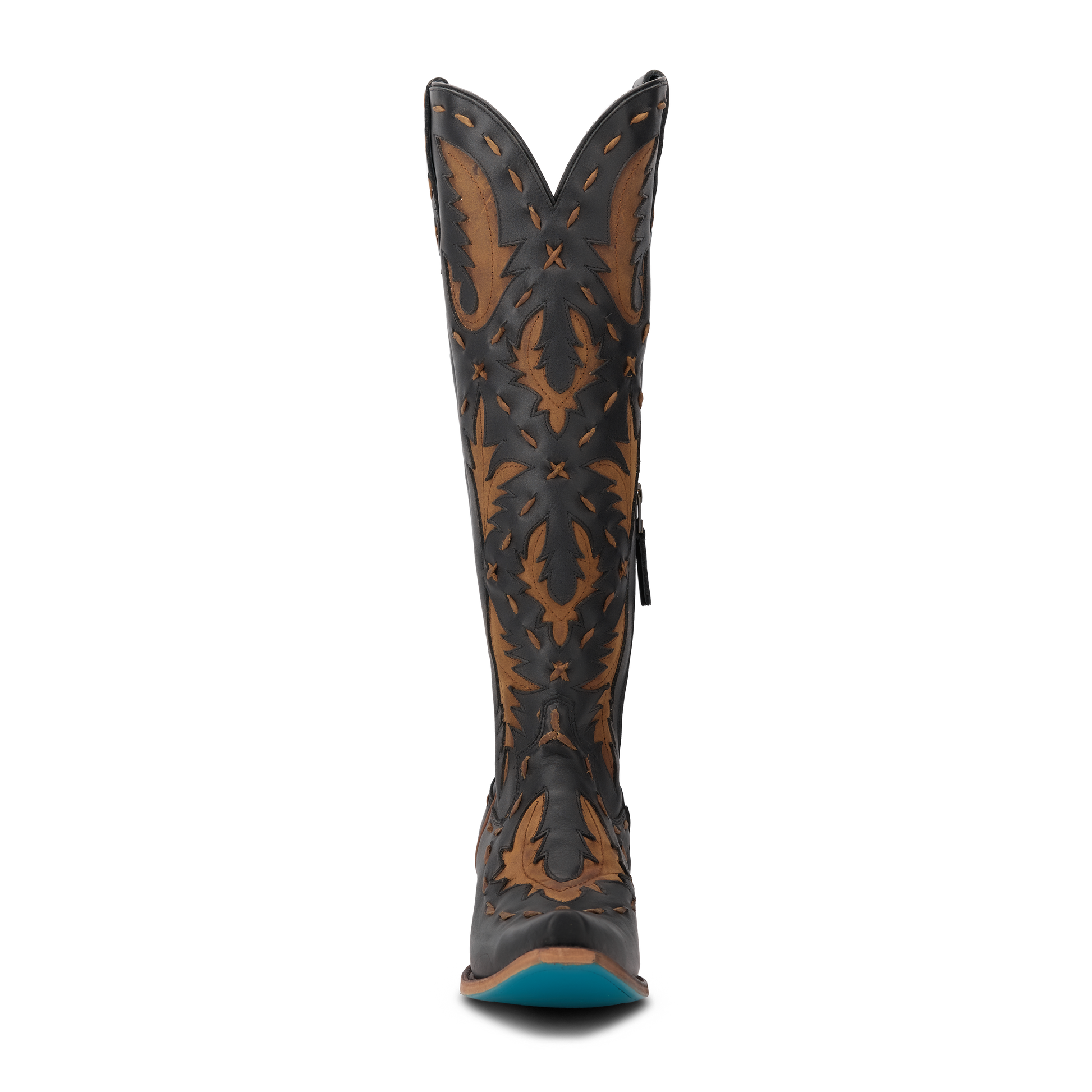 Functional corset with wide tongue to accommodate all sexy leg types. Customize the corset to your leg one time and the easy in, easy out zipper will take care of the rest.