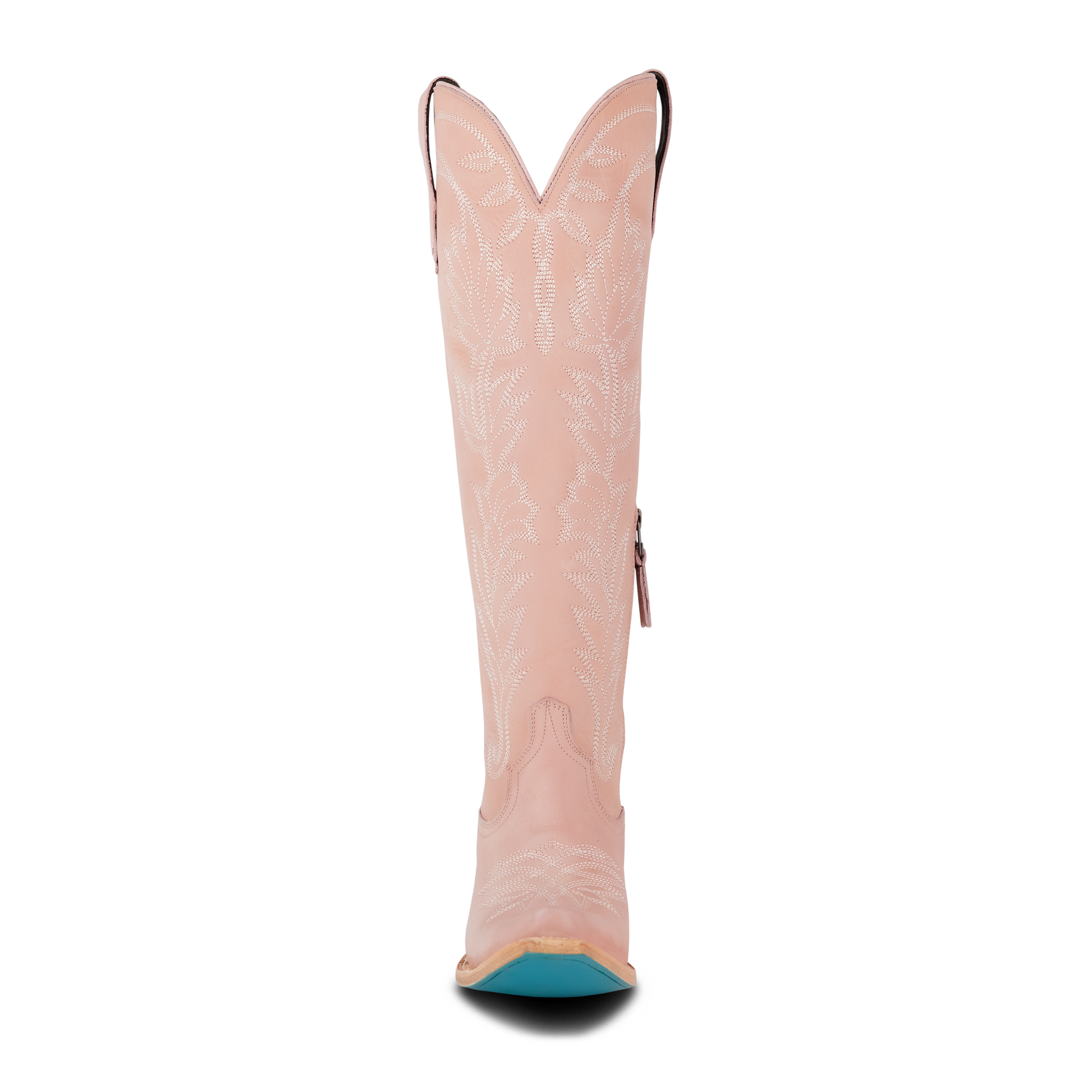 Step out in style with the Lane Sandaga Knee-High Western Boot in a stunning Blush. These boots are crafted with premium leather, offering a soft yet durable finish that promises both comfort and longevity. The intricate white stitching adds a beautiful touch of elegance to the Western-inspired design, creating a timeless look that pairs perfectly with dresses, jeans, or skirts.