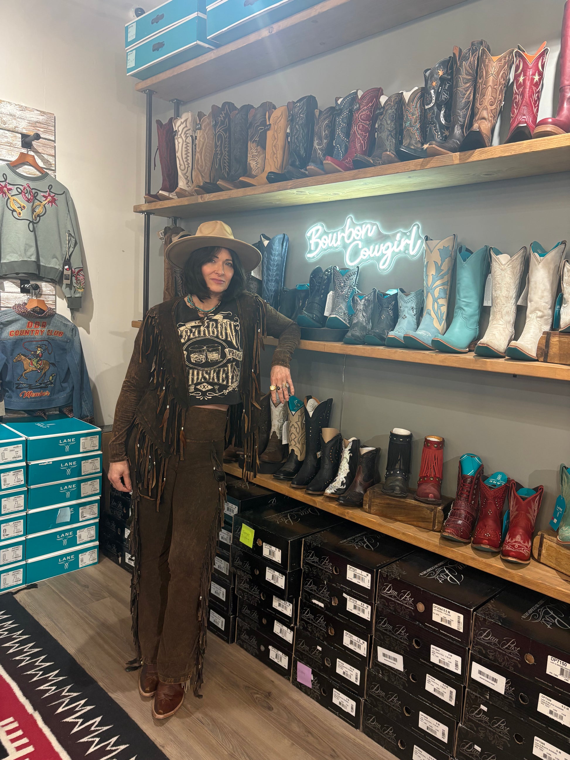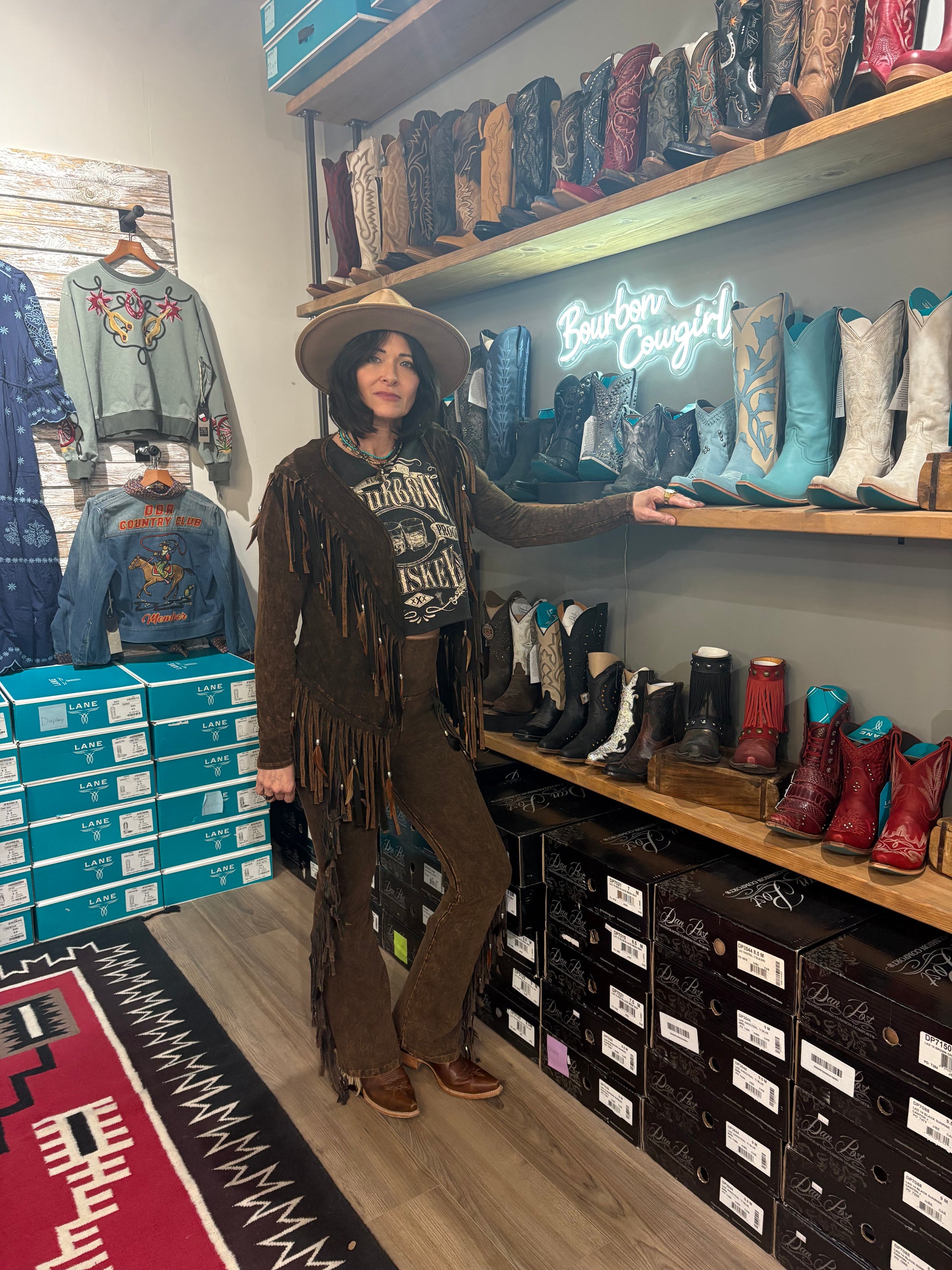 Short V Back Fringed and Feathered Jacket by Pat Dahnke -Brown