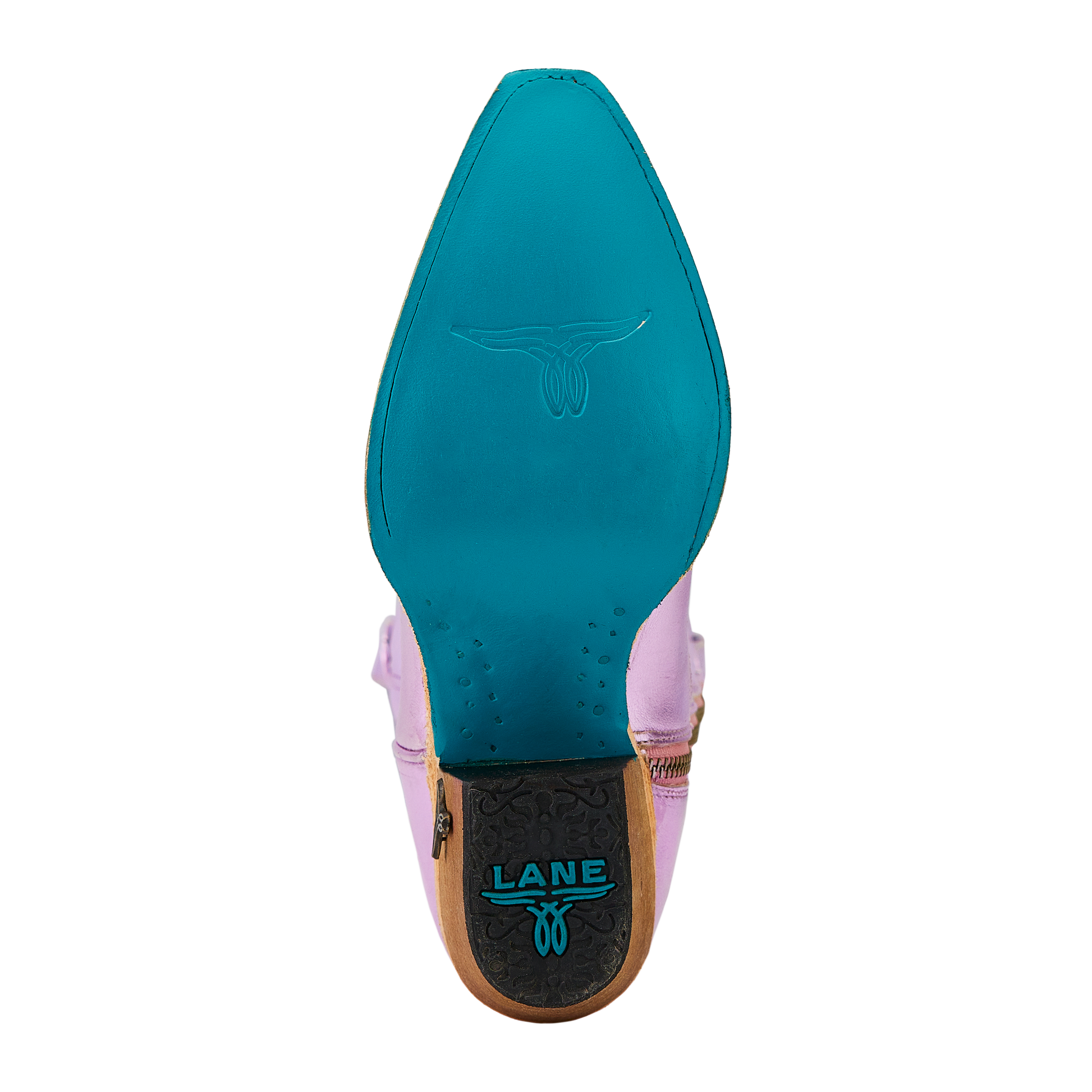She's the perfect chic, lavender metallic cowgirl boot right off the runway.
