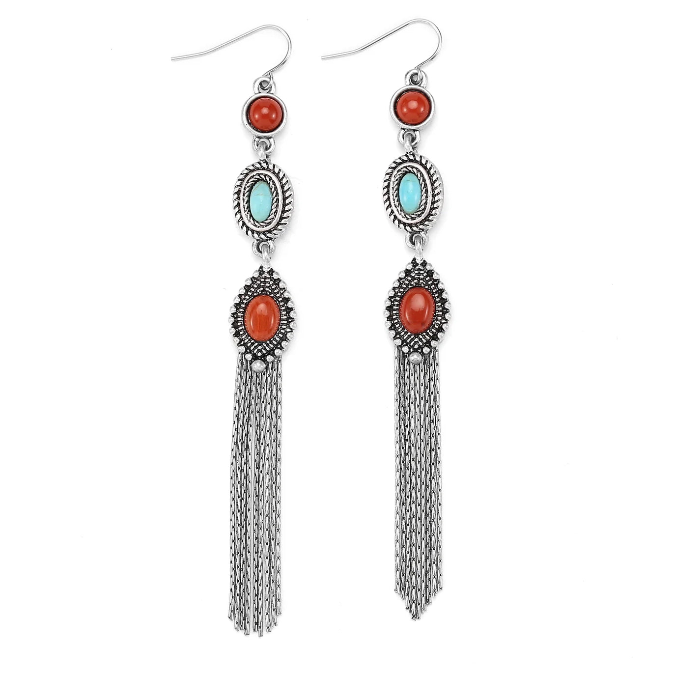 Silver fringe earrings with bold red jasper and calming howlite turquoise stones