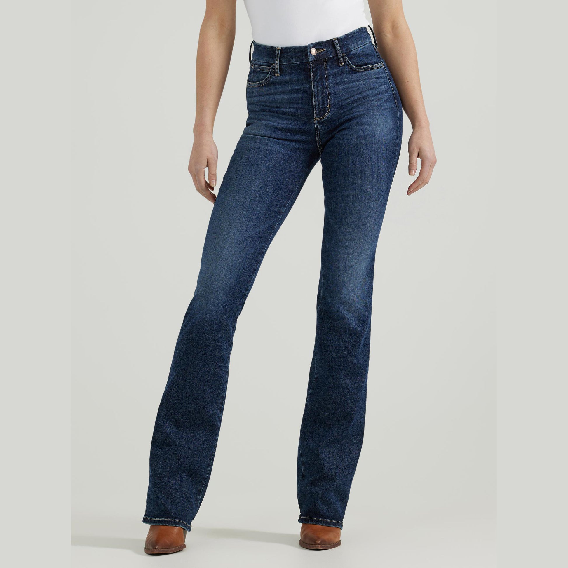 Wrangler Bespoke High Rise Bootcut Jean in Lacey. Welcome to a whole new frontier in fit. The Women’s Wrangler® Bespoke High-Rise Bootcut Jean gives your curves the spotlight they deserve. It comes with a contoured waistband that eliminates gapping and a silhouette that celebrates your shape from every angle. These bootcut jeans for women are crafted from a comfortable cotton blend with stretch for added flexibility and shape retention. They also feature all the iconic details: the five-pocket styling, the “W” embroidery, a logo patch, and authentic washes. The Wrangler Bespoke Collection features superior stretch and detailing, so finding the right fit is no longer a wild rodeo.